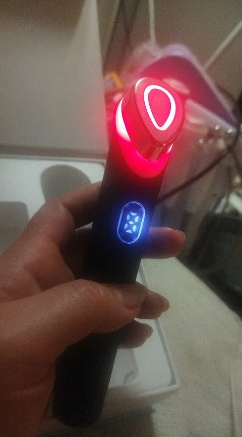 It stimulates collagen and facial muscles using LED light and EMS microcurrent.